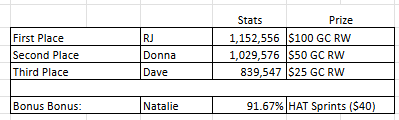 A $25 Runner’s Warehouse gift card, because hey—podiums are podiums.